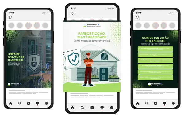 Com o Combo para Segurança Patrimonial, você terá acesso a mais de 60 posts profissionais para divulgar seus serviços nas redes sociais de forma simples, rápida e extremamente eficaz!